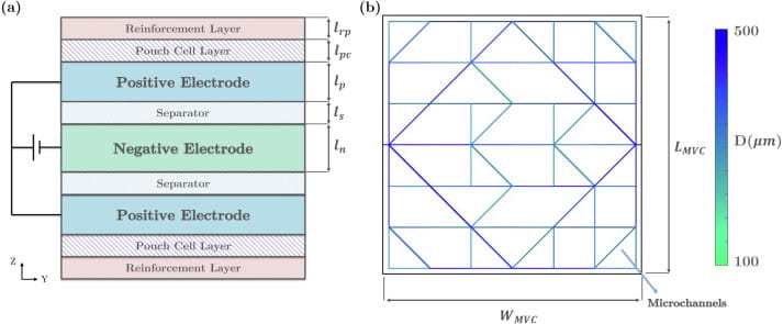 The design system, presented by Najafi’s team in their latest research, can calculate the best pattern, size and number of microvascular channels to quickly dissipate heat from the batteries, as well as optimizing the design for flow efficiency of the coolant moving through the channels.